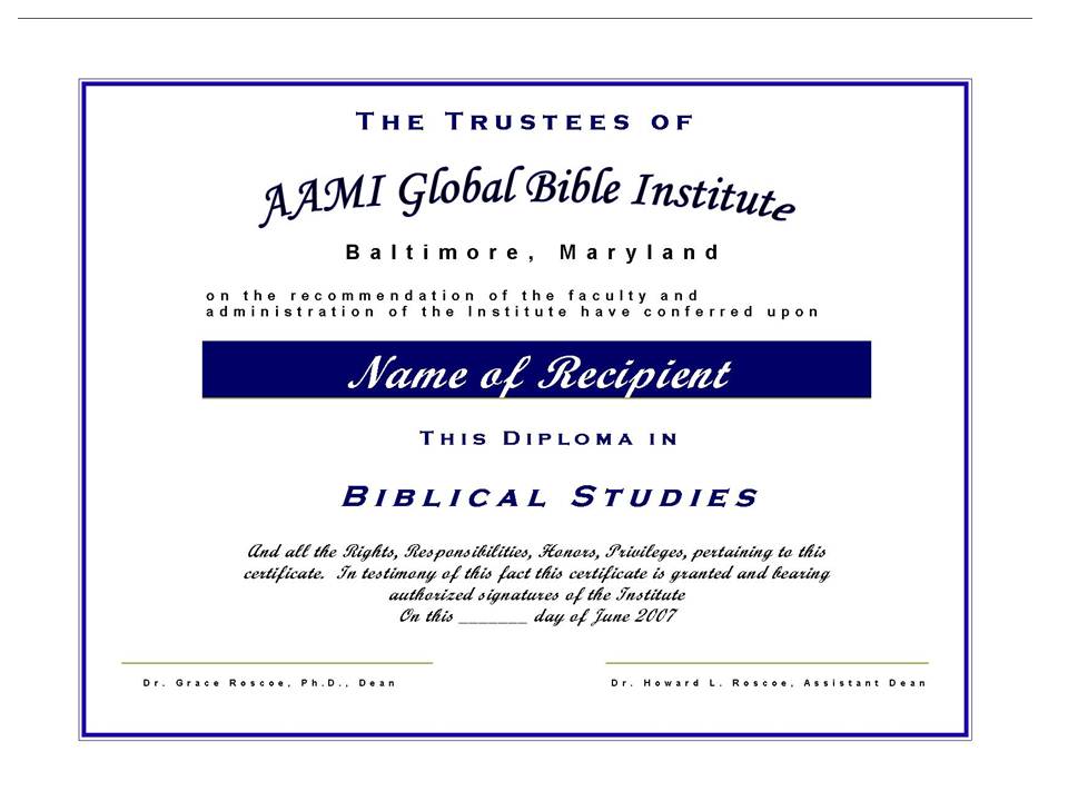 both AAMI Bible Institute and Evangelical Training Association (ETA).Students may have already met certain course credit requirements depending upon prior Christian training and experience.